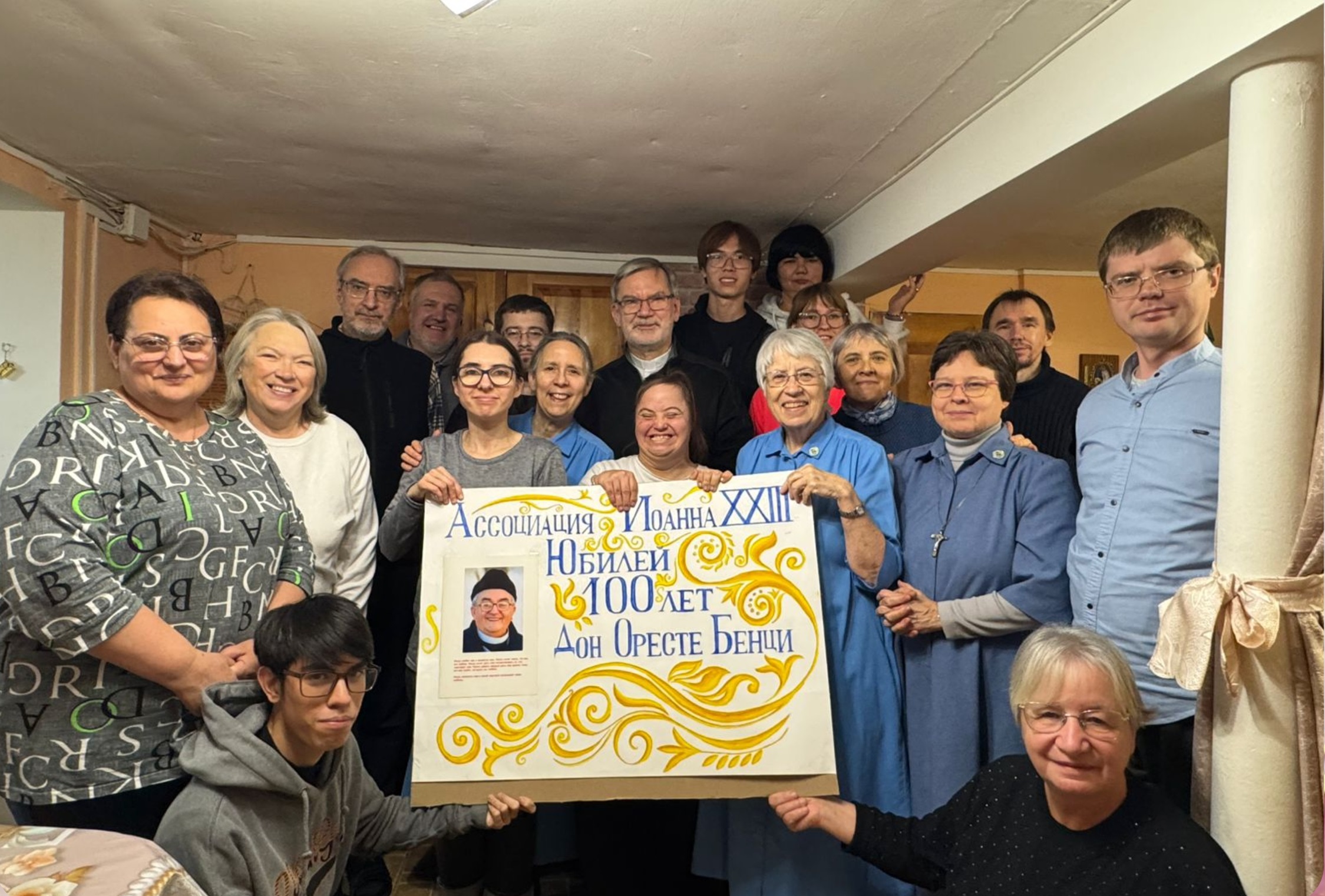 День совпал ещё с одной важной датой — 100-летием Дона Оресте Бенци, основателя Ассоциации Иоанна XXIII, члены которой в нашей Епархии есть в Астрахани, Элисте и Волгограде. На воскресной Мессе присутствовал 101 человек — это много, по меркам наших небольших приходов на юге России. Особенно заметно было большое количество молодых людей: средний возраст общины за прошедший год заметно снизился, а атмосфера богослужения отличалась миром и открытостью. Это, как отметил Владыка, красивый плод доброй и согласованной работы францисканцев и сестер Семьи Мариам, служащих в приходе.
